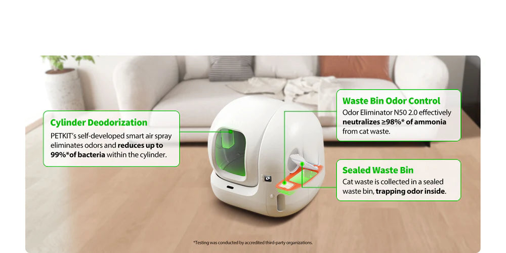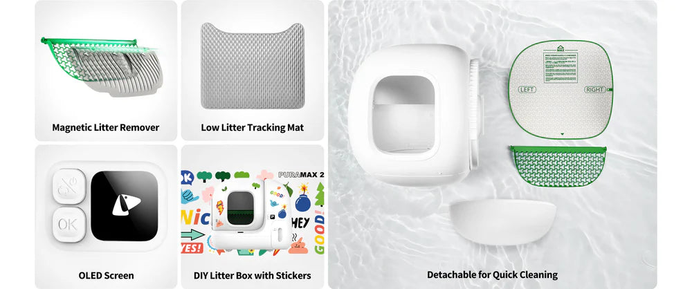 PURAMAX 2 redefines efficient maintenance and ensures anti-leakage with an upgraded sealed cylinder. Designed for multi-cat households, its spacious interior, advanced triple deodorization, and innovative xSecure structure unleash a hygienic and safe litter box experience.